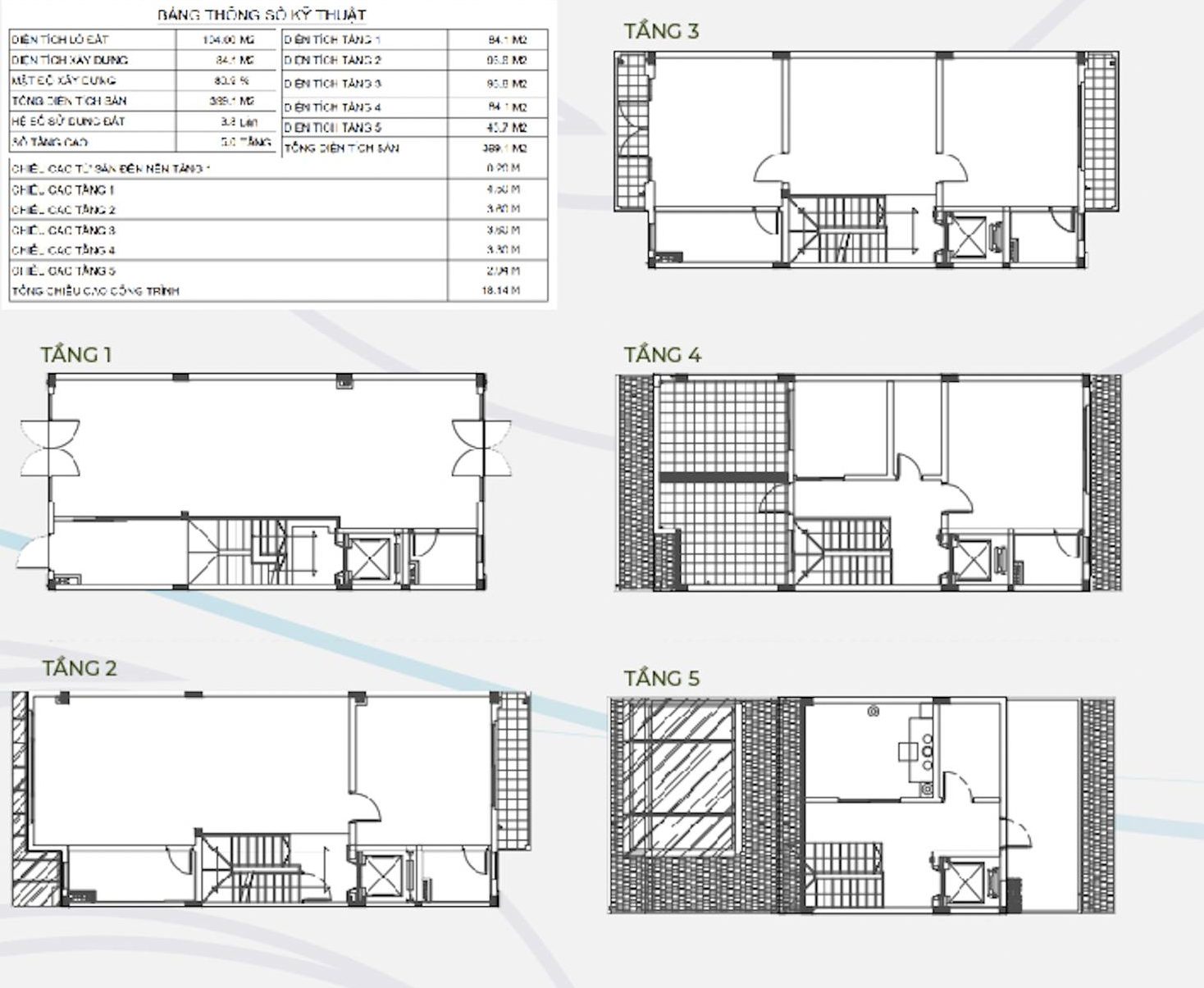 | SỐ TẦNG | 5 | TỔNG DIỆN TÍCH SÀN | 368.4 M2 |
